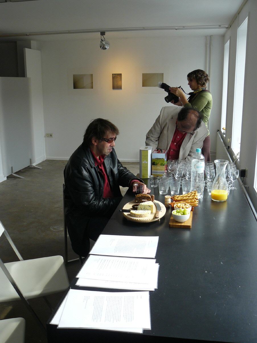 Fotografie is een reproductief medium maar Rudi Struik maakt er in zijn ‘Fotofresco’s’ weer unica van. Zelfgenomen of gevonden foto’s worden gescand en op speciaal, nu niet meer verkrijgbaar, fotopapier in spiegelbeeld afgedrukt en in gips afgegoten. Een delicaat proces dat in één keer goed moet gaan want daarna is de papieren foto weg. De gipsen foto krijgt door de absorberende eigenschap van het gips een fluwelige textuur en de chemie tussen fotopapier en gips doet soms heel onverwachte dingen: kleuren veranderen, een vreemde schaduwwerking treedt op, de lichtintensiteit varieert. Totale vervreemding ontstaat wanneer door het schijnsel van een lamp de glasdia’s weer tot leven komen en de beelden van de oude meesters als schaduwen op de wand worden geprojecteerd. Heel subtiel en soms vaag, of vervormd door de schuine lichtval. In het vertekende schaduwportret is Cézanne’s portret te herkennen van zijn oom Dominique verkleed als monnik uit 1866.